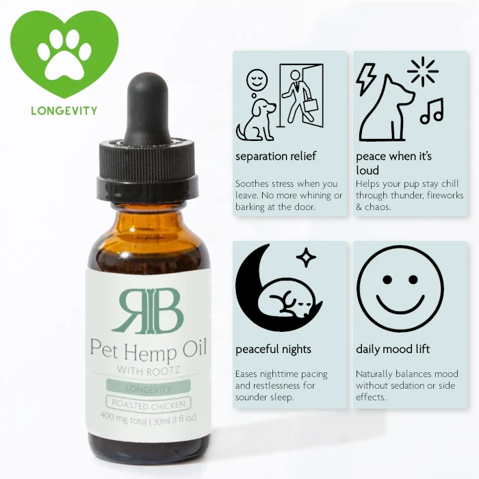 Prioritize your dog's longevity with Redbone Nutrition's Organic Hemp Oil Longevity – an all-natural oil dropper that promotes overall health and heart care. Because a healthy dog is a happy companion, and Redbone Nutrition is committed to providing the key to a thriving and vibrant life for your furry friend.